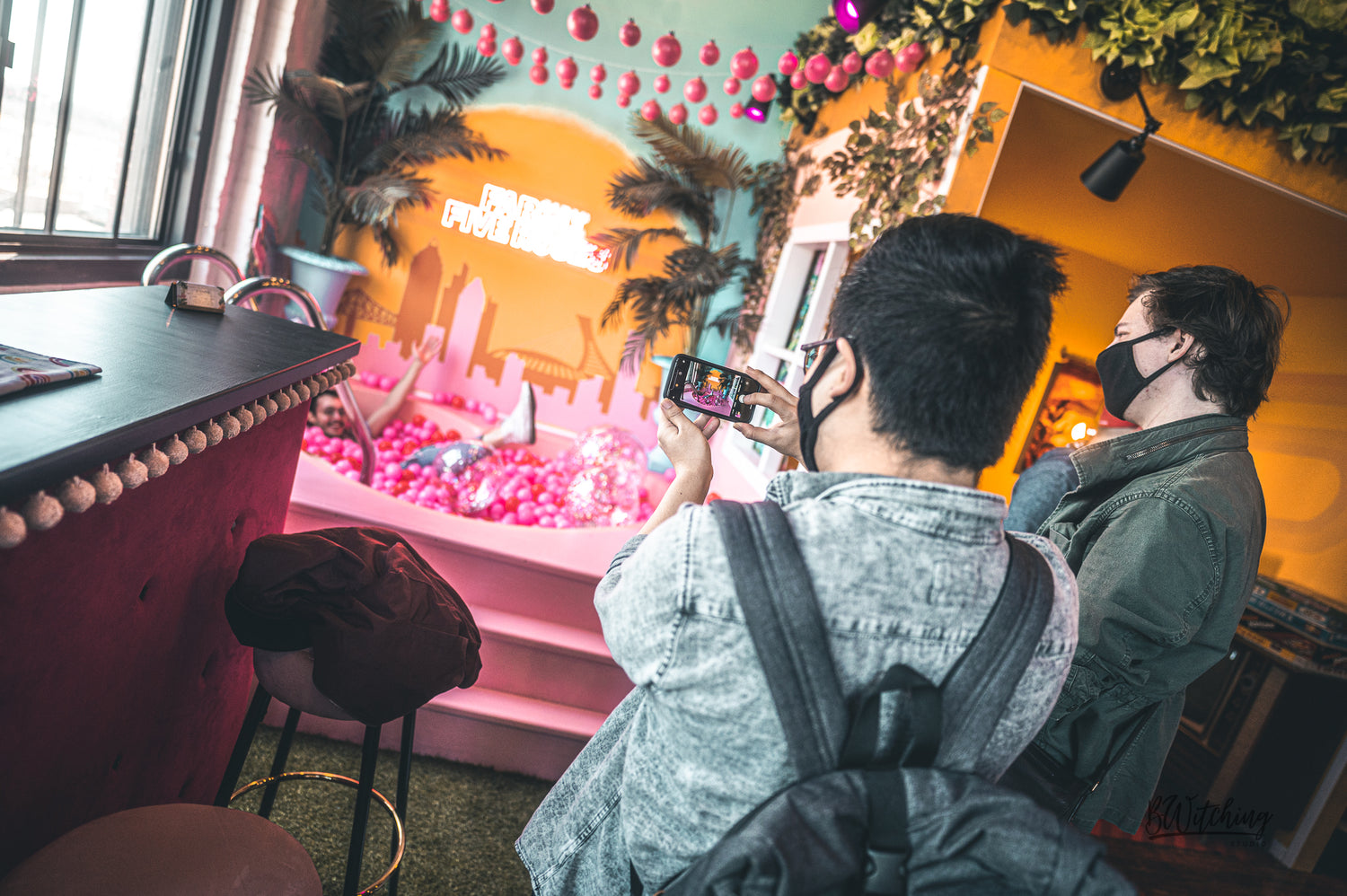 Melissa also generously donated the pink balls strung over the ball-pit, which is an actual strand from the giant art installation: 18 Shades of Gay by Claude Cormier, a staple of the Montreal Gay Village for 8 years.