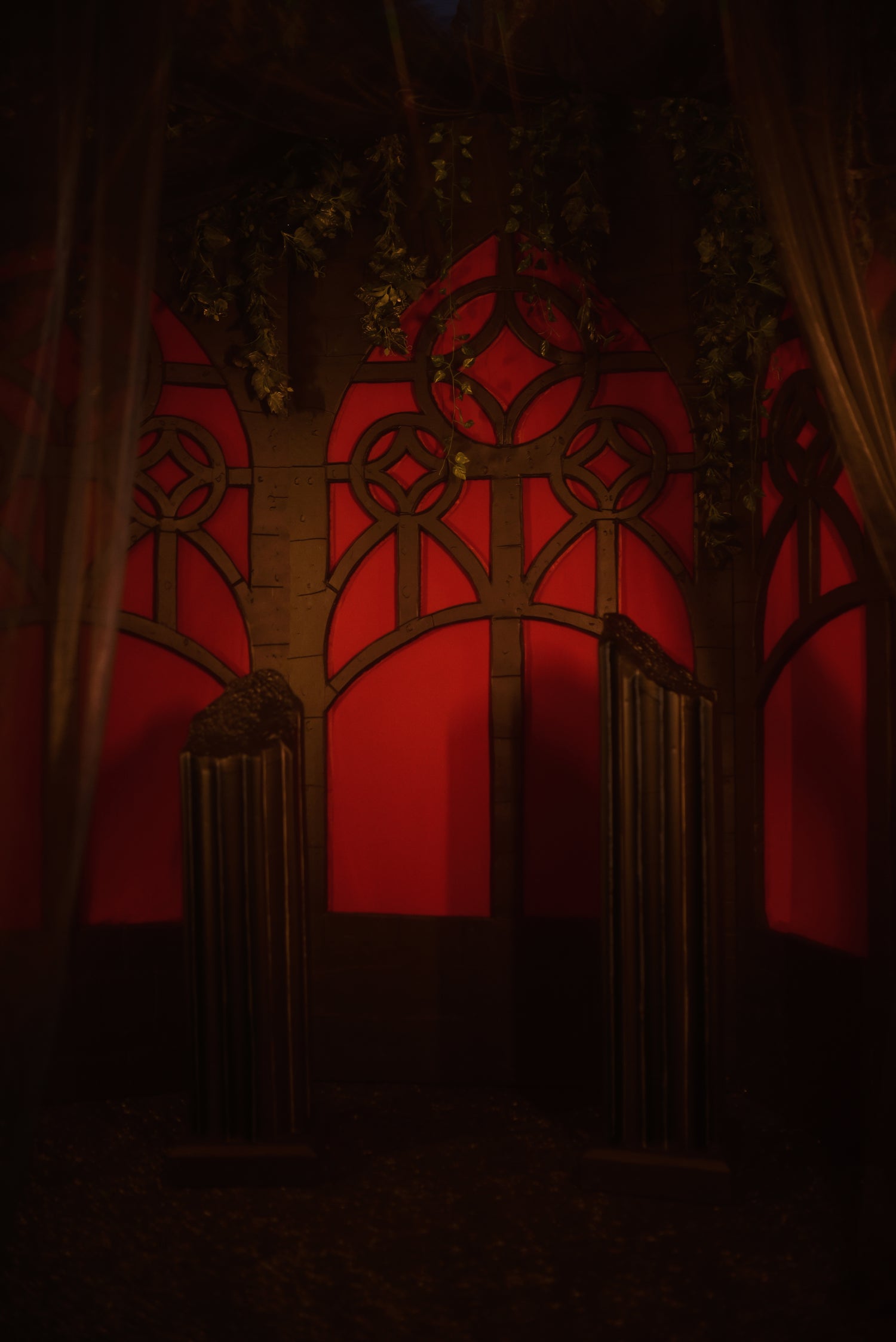 Step into our vampiric Gothic Castle, It's been long abandoned and is now growing ivy and moss between the cracks. The pillars are moveable and the sheer canopy can be gently tossed around for DRAMA.