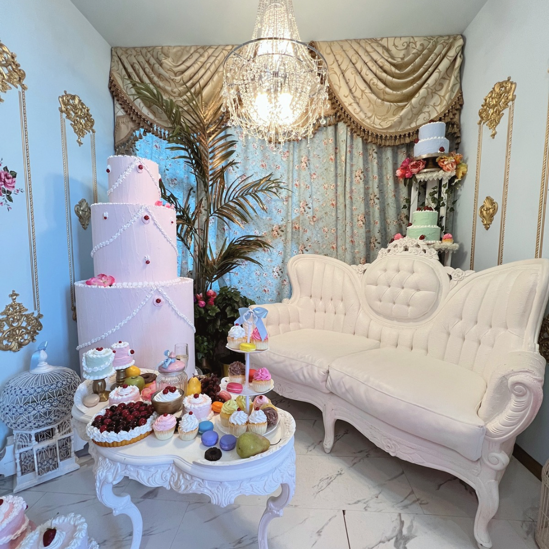 These cakes and treats are the perfect props for any sweet photoshoot. This room will make you feel like Royalty!