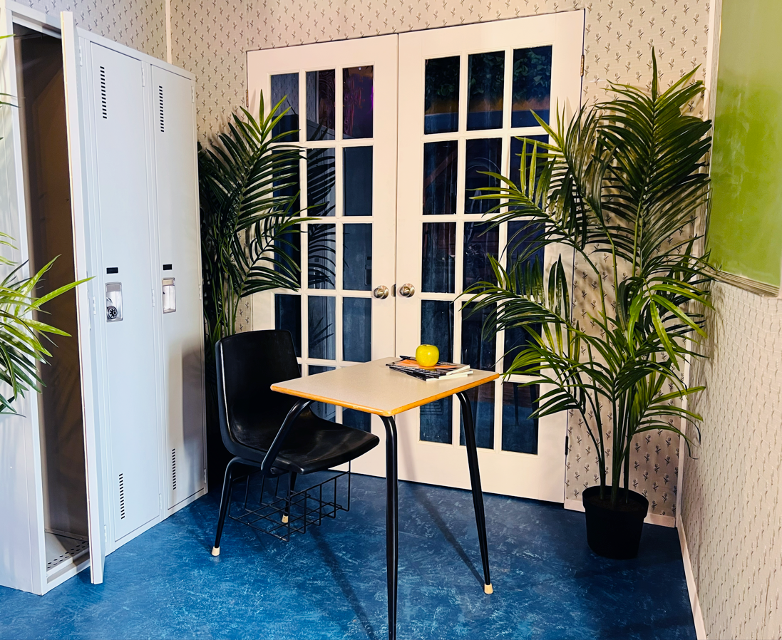 Step into our Classroom Set and instantly feel like you’re in the middle of an anime episode, teen drama, or nostalgic school movie. With a classic desk, a chalkboard, and lockers, it’s the perfect backdrop for cosplay, character storytelling, and fun group photos. Grab a seat, write your scene on the board, and bring your favorite characters to life.