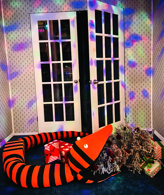 Oh no! A well intentioned Halloween Spirit has taken over our family Christmas room! The snake puppet is fully customizable and made by local artist Julie Delisle!