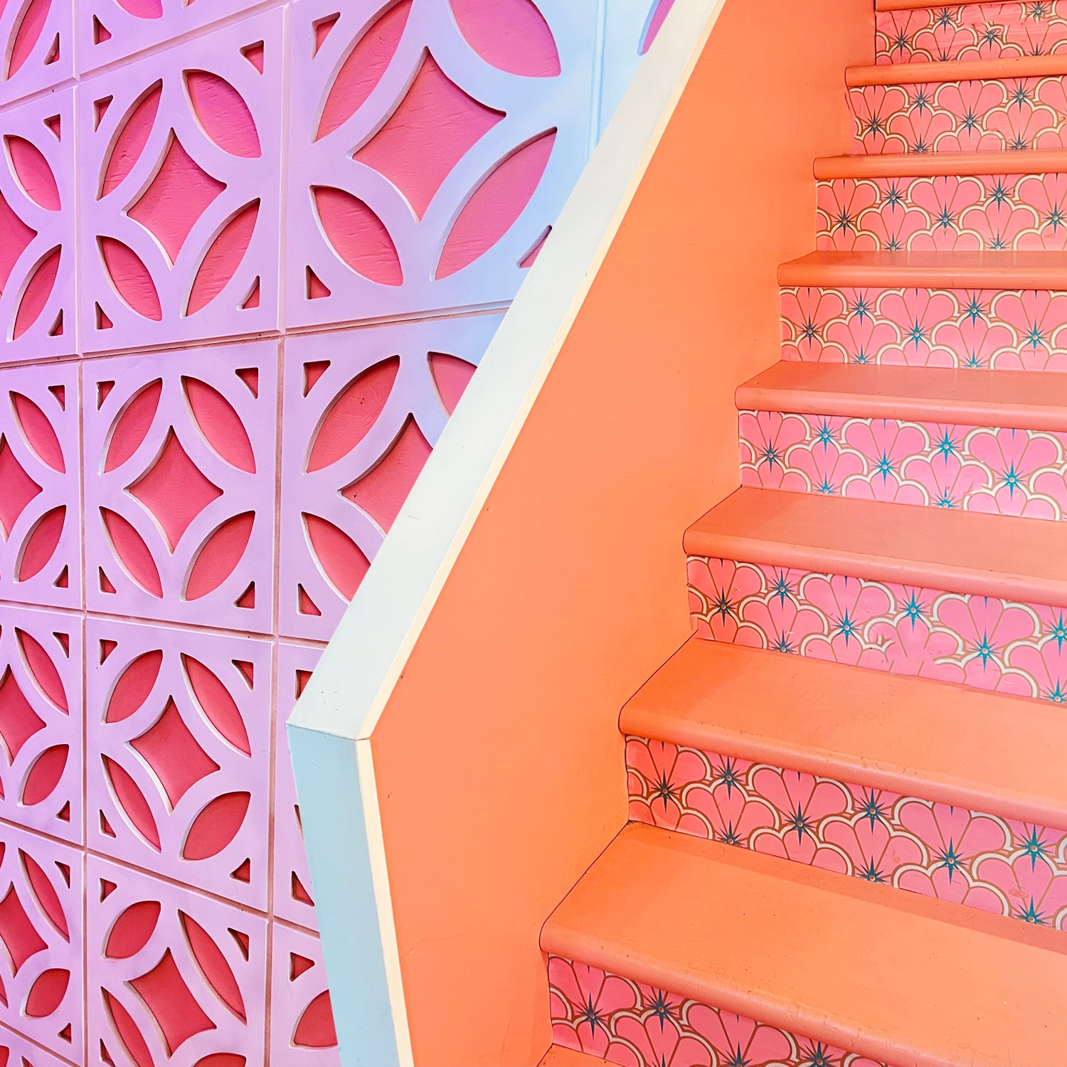 Our entire studio is designed to feel like a retro roadside motel. Bright neons, classic palm trees, Populuxe architecture elements, telephones and room keys are part of the whole ambiance.